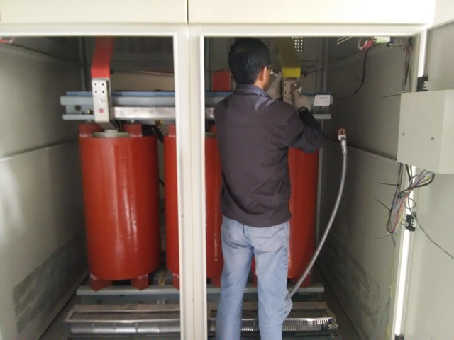 5月10日,市供電公司專業(yè)人員及物業(yè)管理部高低壓電工準時到場,有序地對6臺變壓器及17面高壓進線柜、29面低壓柜、電容補償柜等設(shè)備進行了交流耐壓試驗、直流耐壓試驗、直流電阻試驗、變比試驗、回路電阻試驗、開關(guān)測試試驗、介質(zhì)損耗角試驗、絕緣試驗及接地電阻等試驗,并對柜內(nèi)所有接線端子、螺栓、儀器儀表、繼電器等部件進行了清潔、檢測和調(diào)試。