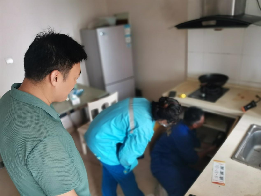公司邀請燃?xì)夤緦@區(qū)公舍、蘇宿工業(yè)坊等用氣場所逐一入戶檢查,現(xiàn)場查看燃?xì)獍惭b、使用、維護(hù)保養(yǎng)等是否符合安全技術(shù)標(biāo)準(zhǔn),軟管是否存在老化、泄露,是否安裝可燃?xì)怏w報(bào)警裝置等,并為園區(qū)公舍18號樓更換智能燃?xì)獗怼F陂g,檢查人員還向用戶宣講了燃?xì)獍踩R。