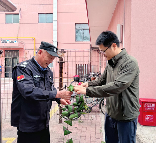 活動結束后,工作人員還第一時間將新出爐的熱粽子送到現場值班保安、保潔手中,傳遞節(jié)日關懷。