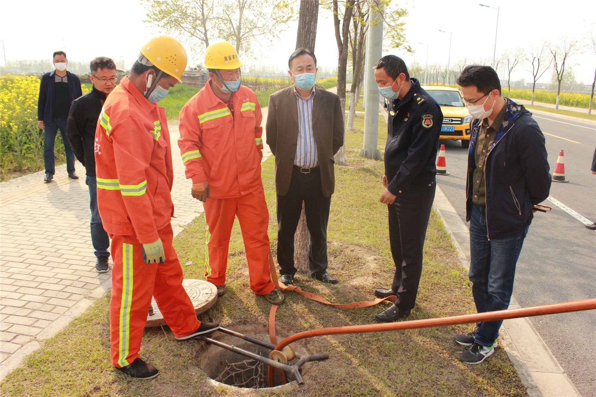 4月9日下午,園區(qū)黨工委委員、管委會副主任、規(guī)劃建設局局長帶隊檢查汛前管道疏通工作。