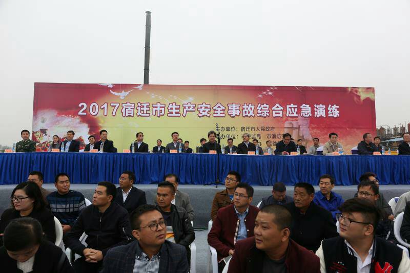 10月17日上午10時,2017宿遷市生產安全事故綜合應急救援演練活動在宿遷生態(tài)化工科技產業(yè)園隆重舉行。此次活動由宿遷市人民政府主辦,市安監(jiān)局、市消防支隊、市應急辦、宿豫區(qū)人民政府承辦。省安監(jiān)局副局長趙啟鳳,省政府總值班室副主任薛廣建,市委副書記、市長王天琦,現(xiàn)場觀摩演練。市直有關單位,以及各縣、區(qū),市各開發(fā)區(qū)、新區(qū)、園區(qū)相關負責人現(xiàn)場觀摩演練。
