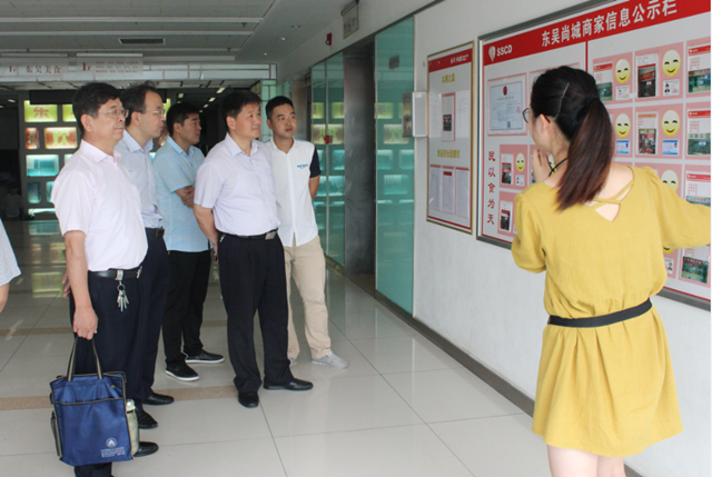 于堅(jiān)強(qiáng)一行先后參觀了東吳尚城美食城和園區(qū)公舍餐廳,聽取了園區(qū)小餐飲集中區(qū)建設(shè)背景和運(yùn)營狀況的介紹,并先后觀看了園區(qū)運(yùn)用移動(dòng)終端、二維碼等技術(shù)手段推動(dòng)明廚亮灶、遠(yuǎn)程監(jiān)管、社會(huì)共治的現(xiàn)場(chǎng)演示。考察中,于處長(zhǎng)對(duì)園區(qū)積極創(chuàng)新監(jiān)管手段,推動(dòng)社會(huì)共治,將小餐飲管理出高標(biāo)準(zhǔn)給予了充分肯定,他要求建發(fā)公司要進(jìn)一步創(chuàng)新監(jiān)管思路,加大食品管理力度,確保食品衛(wèi)生安全零事故。