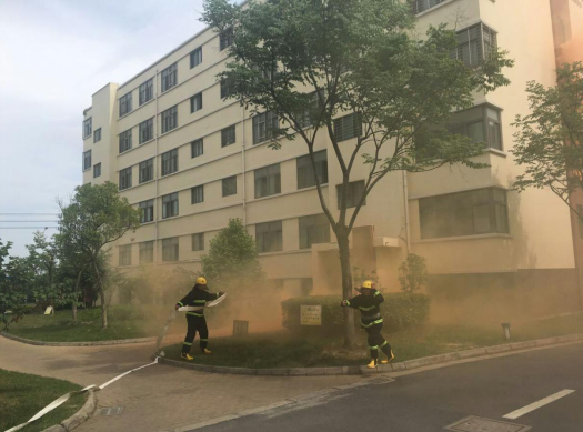 14:20分,園區(qū)公舍2號宿舍樓冒起滾滾濃煙,隨即刺耳的火災警報聲響徹園區(qū),義務消防戰(zhàn)斗人員接到指示立即啟動消防三輪車奔赴火災現(xiàn)場。不到一分鐘時間,一至六層的租戶在疏散人員的帶領(lǐng)下掩住口鼻,彎著腰,有序地從宿舍的消防安全通道逃生。隨即,消防戰(zhàn)斗人員按照指示迅速開啟消防水泵對“起火”后的宿舍樓進行快速滅火,救護人員隨即趕到現(xiàn)場參加救護,演練持續(xù)近五分鐘后圓滿完成。
